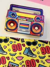 La base es de foamy regular, la parte del medio es de foamy más grueso para colocar glitter, beads u otros rellenos, y la capa superior es la imagen con acabado brillante y una protección para ayudar a evitar rayones.